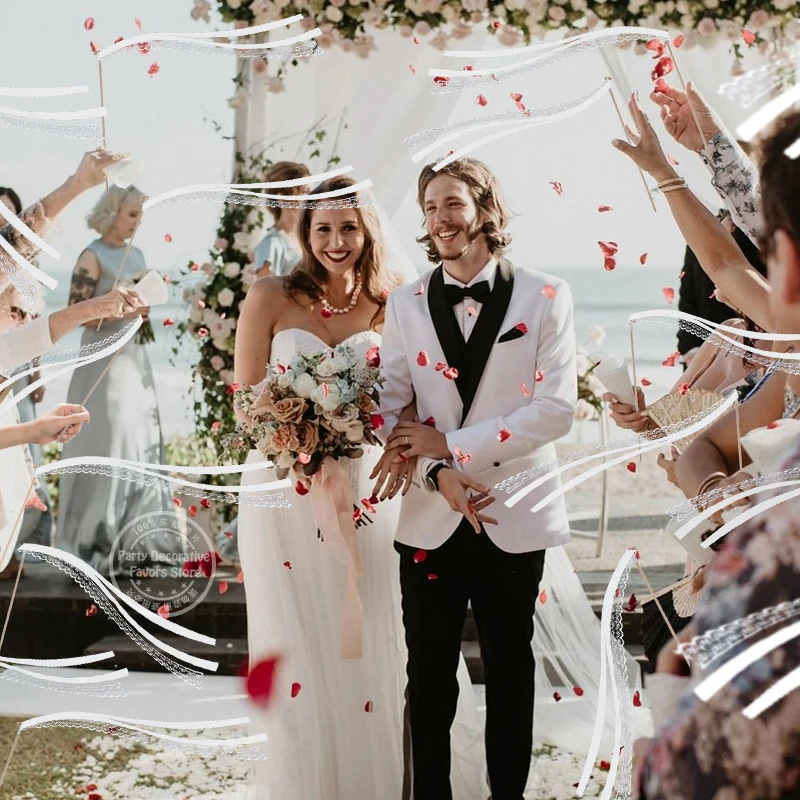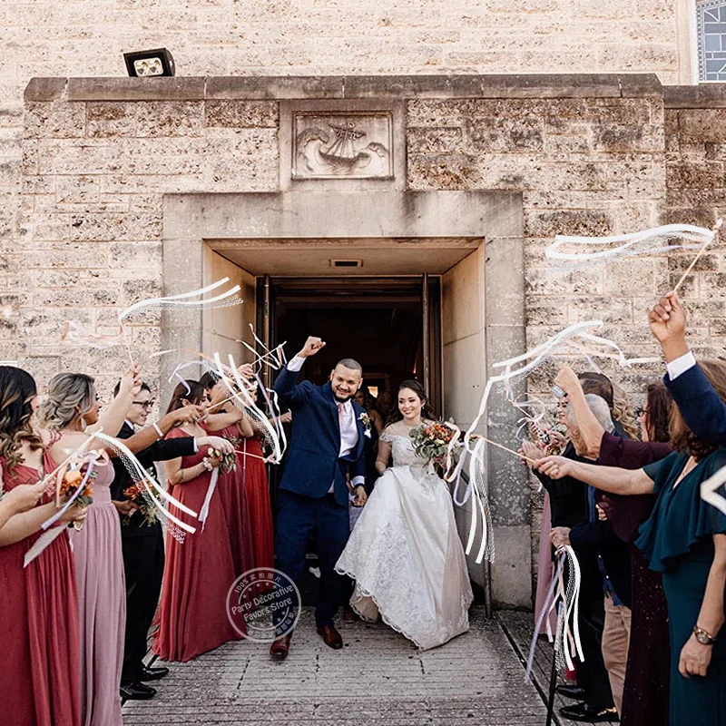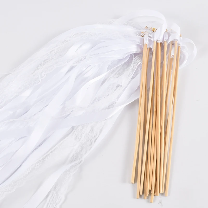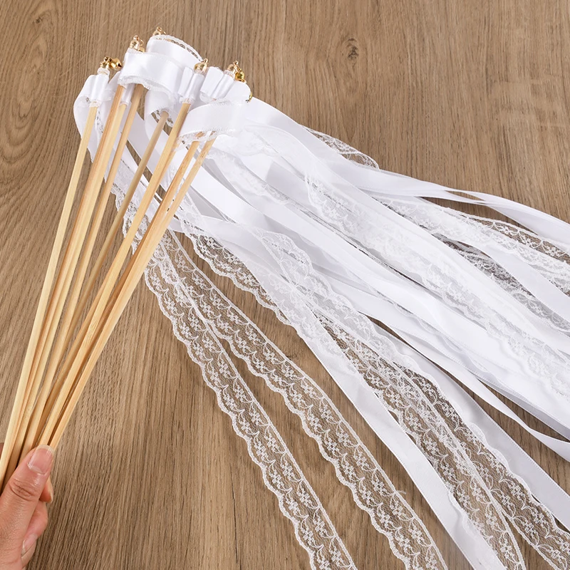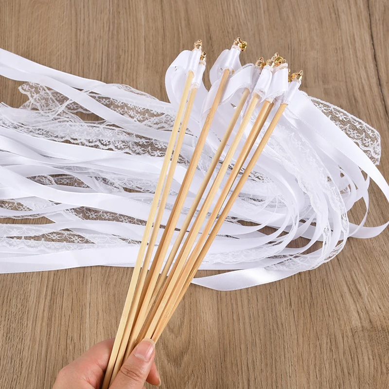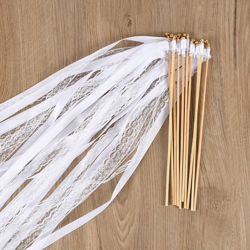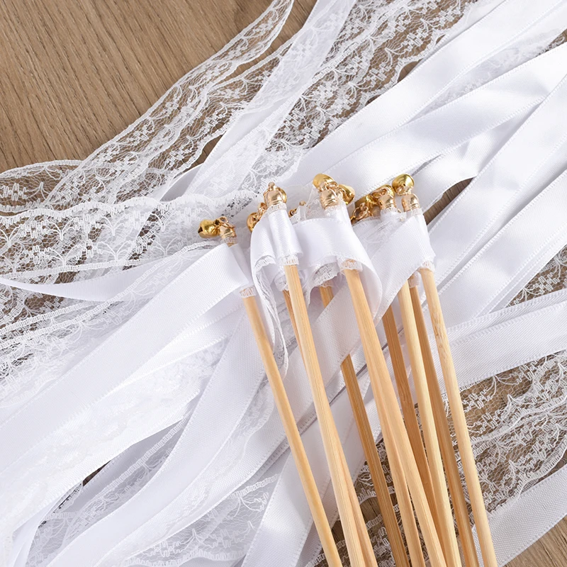 20/50Pcs White Ribbon Wands with Bells Wedding Favors