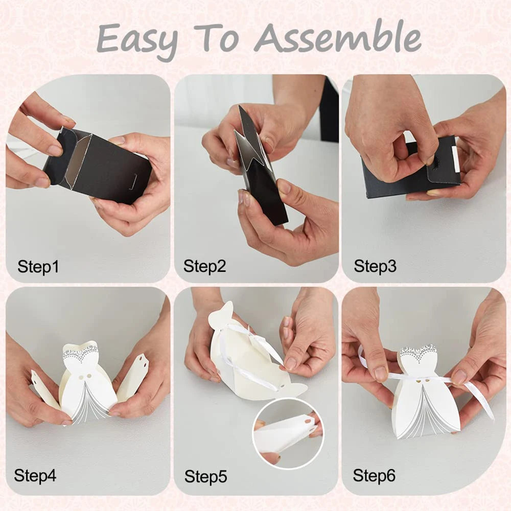 【Easy to assemble】The bride and groom boxes are Predefined creases design, provided ribbon make it convenient to assemble.