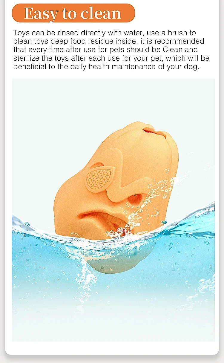 NO DEAD ENDS, EASY TO CLEAN---The toy can be rinsed directly with water, use the brush to clean the deep food residue inside the toy. It is recommended to clean and sterilise the toy after each use for your pet, which will be beneficial to the daily health maintenance of your dog!